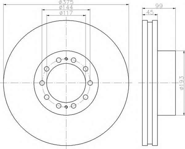 вид на спирачния диск: вътрешновентилиран