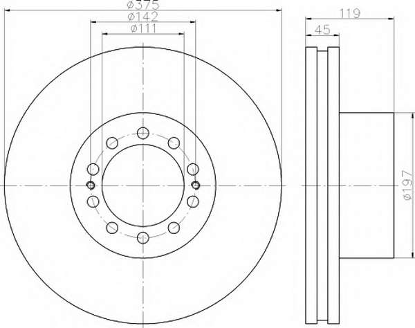 вид на спирачния диск: вътрешновентилиран